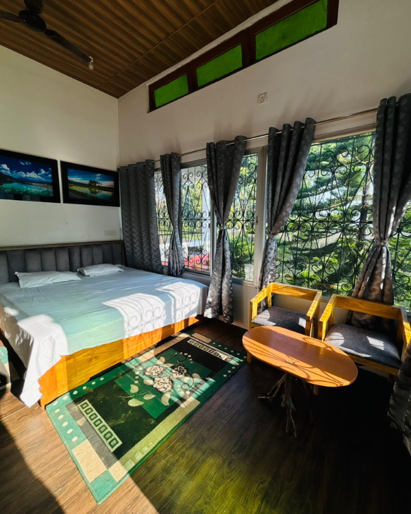 Spacious and comfortable room featuring two double beds, perfect for families or small groups. Enjoy a relaxing stay with modern amenities and a warm, welcoming ambiance at Raidak Nest.